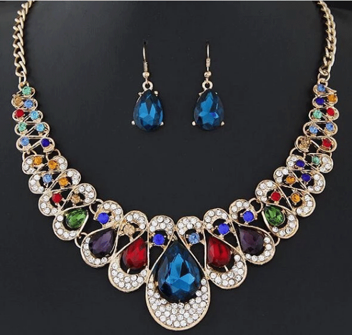 Necklaces Designs 2018 Rhinestone Flower Shape Choker Statement Necklace with Multi Color for Girls
